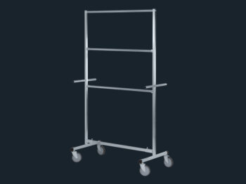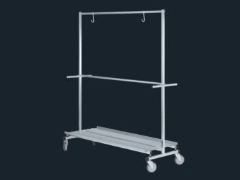 Klädvagnen går att avdela i två våningar då det nedersta röret gå att sänka ner ifrån de hängande krokarna, vilket gör den perfekt till kort/dubbelhängsplagg. Vagnen är försedd med ergonomiska styrhandtag på båda sidor som gör klädvagnen lättmanövrerad.